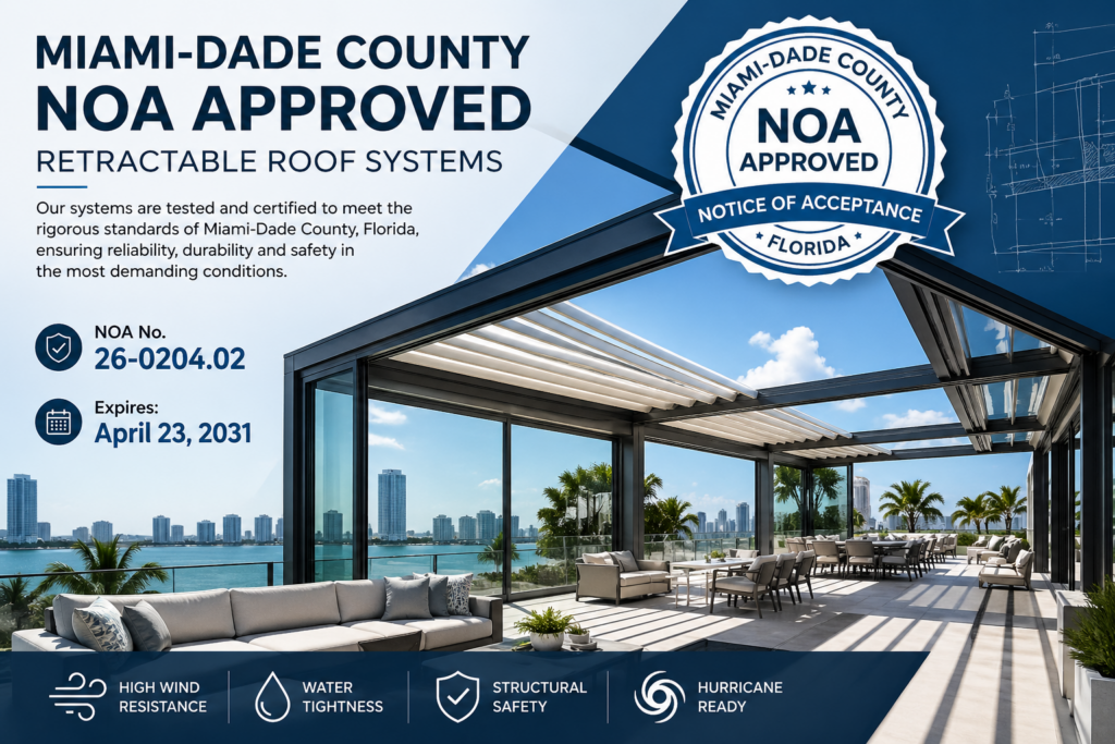 Miami-Dade County NOA Approved Retractable Roof Systems